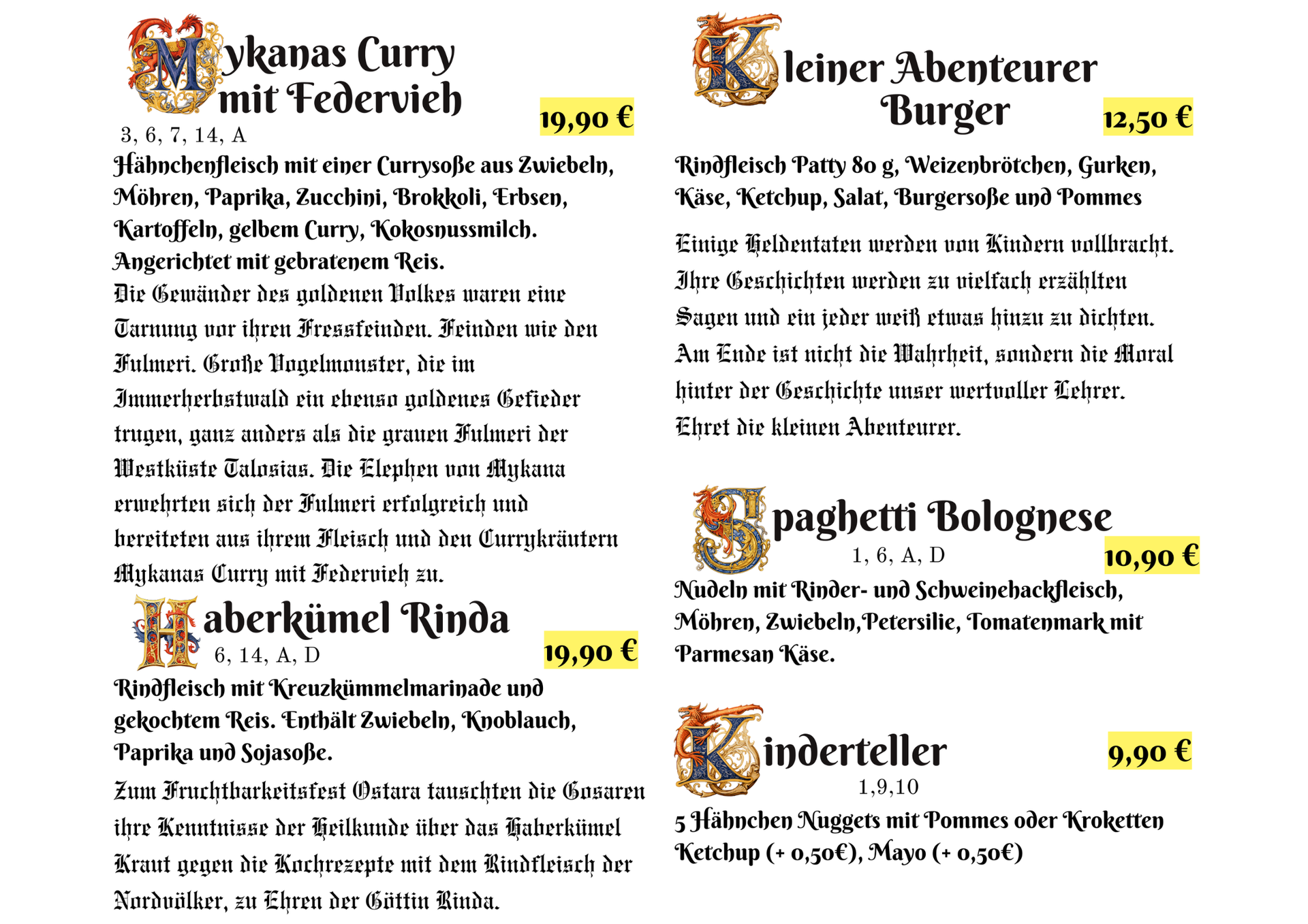 Speisekarte